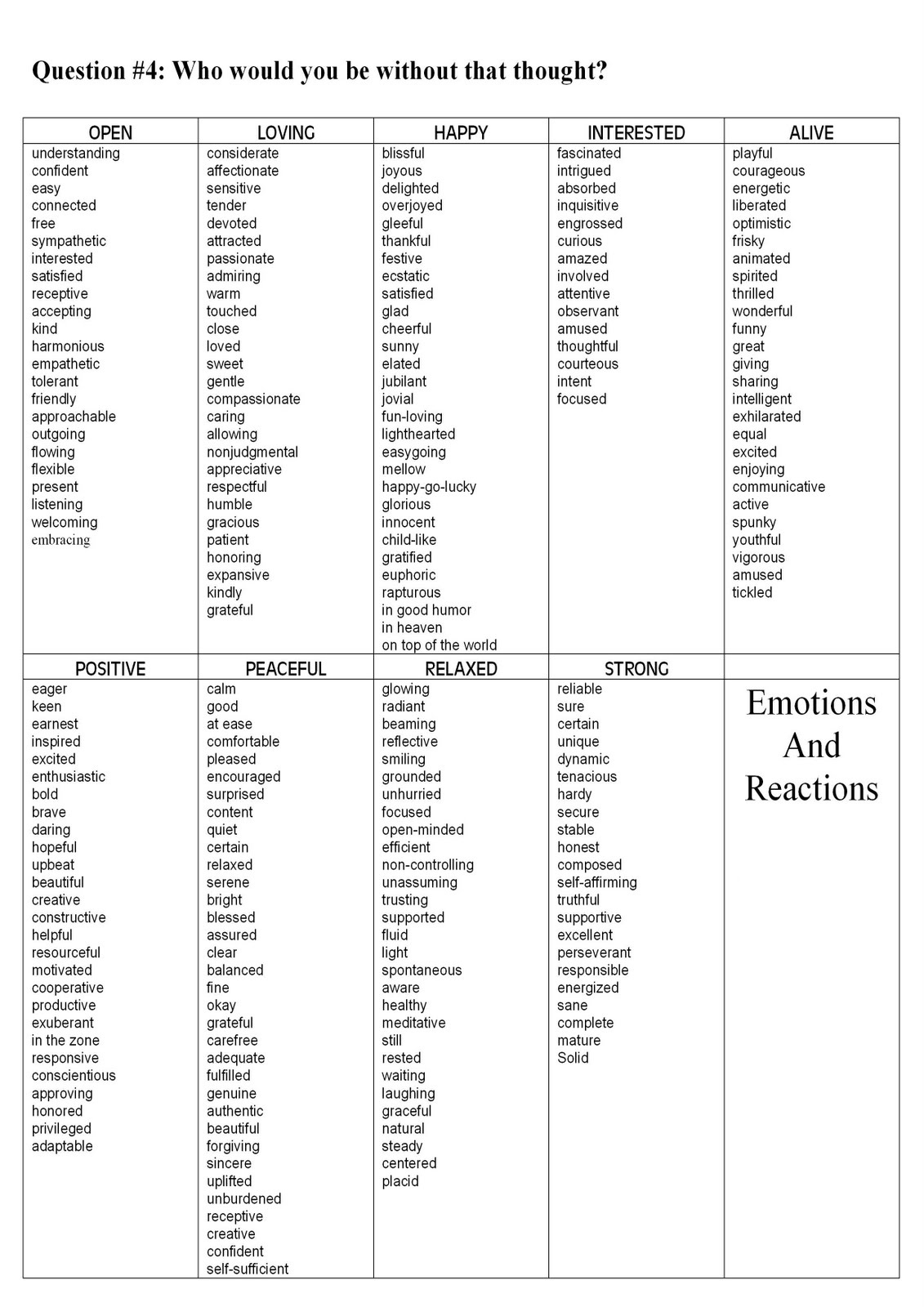 Suggested responses to Question 4 – Who would you be without that thought?4.Who would you be without that thought?