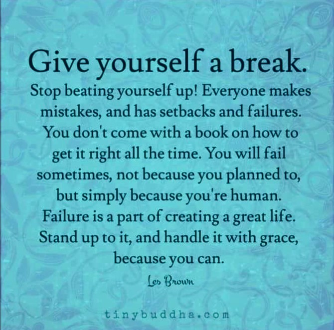 Self-love, or compassion, involves treating yourself kindly, especially in the face of setbacks and disappointments. Learn to say to yourself: “This is really difficult right now. How can I comfort and care for myself in this moment?”
